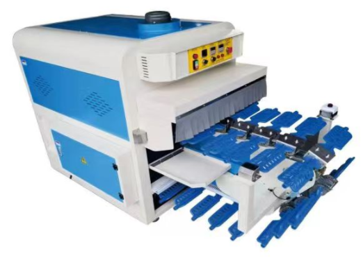 本机专为鞋面在贴大底之前胶水烘干和活化而设计。涂布于鞋面的胶水经由强风烘干后,再在红外线灯的照射下活化。机器的走带传输速度,热风的温度以及红外线照射灯辐射量的调节都十分简便。