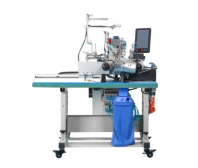 适用于平纹、珠地、拉夹及冰丝棉等针织布料T恤衫,POLO衫,背心和保暖内衣等下摆的自动缝制工艺。 设备的主要特点: ·尺寸自动识别、分码及控制。自动起收针、对齐驳线、剪线。 ·准确定位起针收针位置,杜绝布料颜色误检。 ·倒股装置实现真倒股。 ·纠编装置确保同侧股位一致对齐。 ·自动调整脚边宽度。 ·可实现物联。