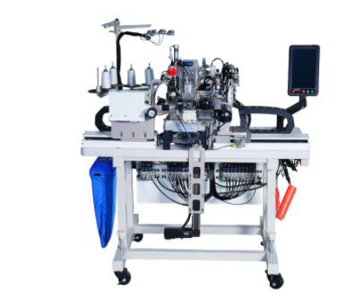 适用于内裤、瑜伽裤等上明筋工艺。 功能特点: · 自动纠偏装置。 · 左扩张自动扩张系统 。 · 激光射线辅助设点 。 · 带感应器自动检测系统。 · 自动倒股装置。 · 自动对股位装置。 · 自动上料 (橡筋)装置。