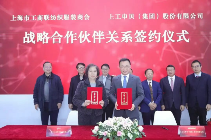 12 月 19 日,上海市工商联纺织服装商会与上工申贝(集团)股份有限公司举行战略合作协议签署仪式。上海市工商联纺织服装商会会长方世俊、副会长刘寅峰;上工申贝集团党委书记兼副总裁方海祥、常务副总裁兼缝纫机事业部总经理李晓峰、副总工程师兼缝纫自动化事业部总经理黄海、董事会秘书兼上海杜克普爱华科技有限公司总经理吴伟洁等双方代表出席活动。