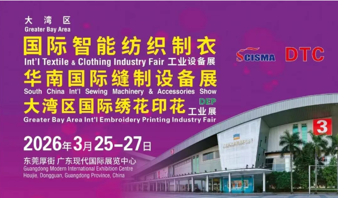 由讯通展览公司、广东省缝制设备商会、海名集团、深圳市缝制设备行业协会、广东省鞋机协会联合主办华南地区最具规模的「第25届大湾区国际智能纺织制衣工业设备展展」、「华南国际缝制设备展」、「大湾区国际绣花印花工业展」及「第25届大湾区国际智能鞋机鞋材工业技术展」,将于2026年3月25 - 27日在东莞厚街 广东现代国际展览中心举行,本次展览会以“智造生态,链接全球”为核心主题,旨在打造一个涵盖纺织服装、缝纫设备、鞋机鞋材、绣花印花全产业链的前沿展示与商贸平台。