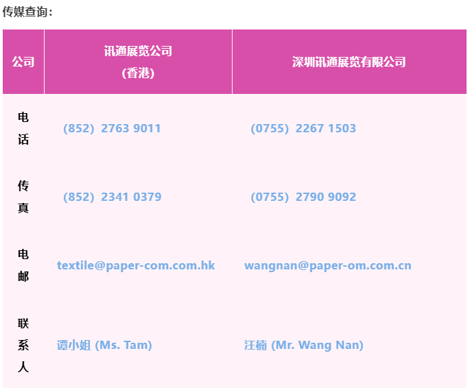 今届的四大展会预计将吸引超过500个全球品牌参展,展区面积达50000平方米。展出先进的智能缝纫设备、编织机械、裁剪、刺绣和激光设备、绣花印花、超声波设备、数码印花、整熨、新材料、电脑辅助生产设计、鞋机和鞋材等智能先进设备和技术,积极配合下游行业的高端个性化生产需求,为服装业及鞋履业提升生产力。