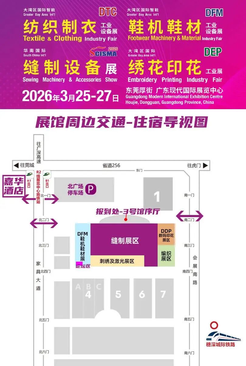 3月25-27日,东莞厚街广东现代国际展览中心,「第25届大湾区国际智能纺织制衣工业设备展」「华南国际缝制设备展」「大湾区国际绣花印花工业展」「第25届大湾区国际智能鞋机鞋材工业技术展」四大展会联动启幕,500+全球品牌集结,海量首发新品重磅登场,邀您共赴这场智造盛宴!