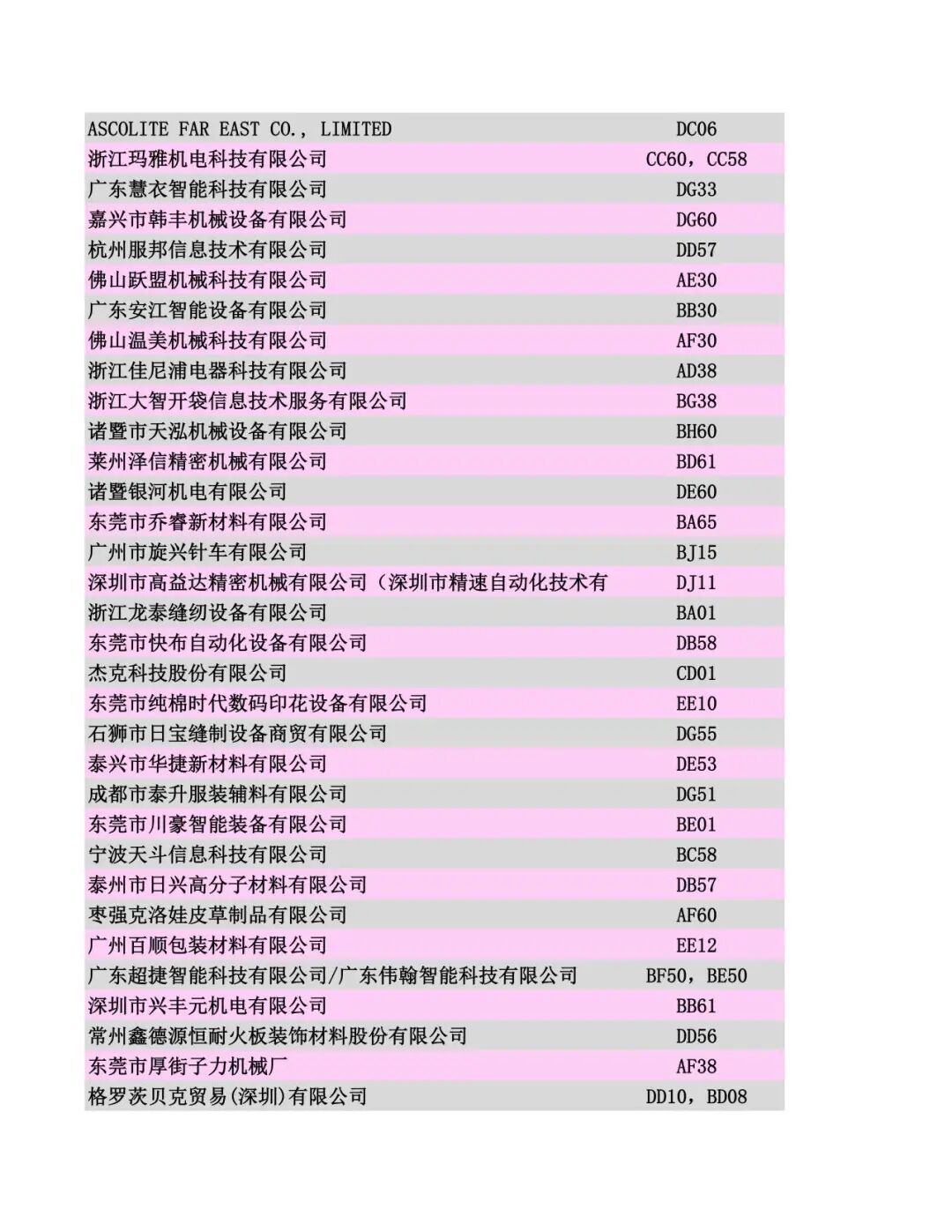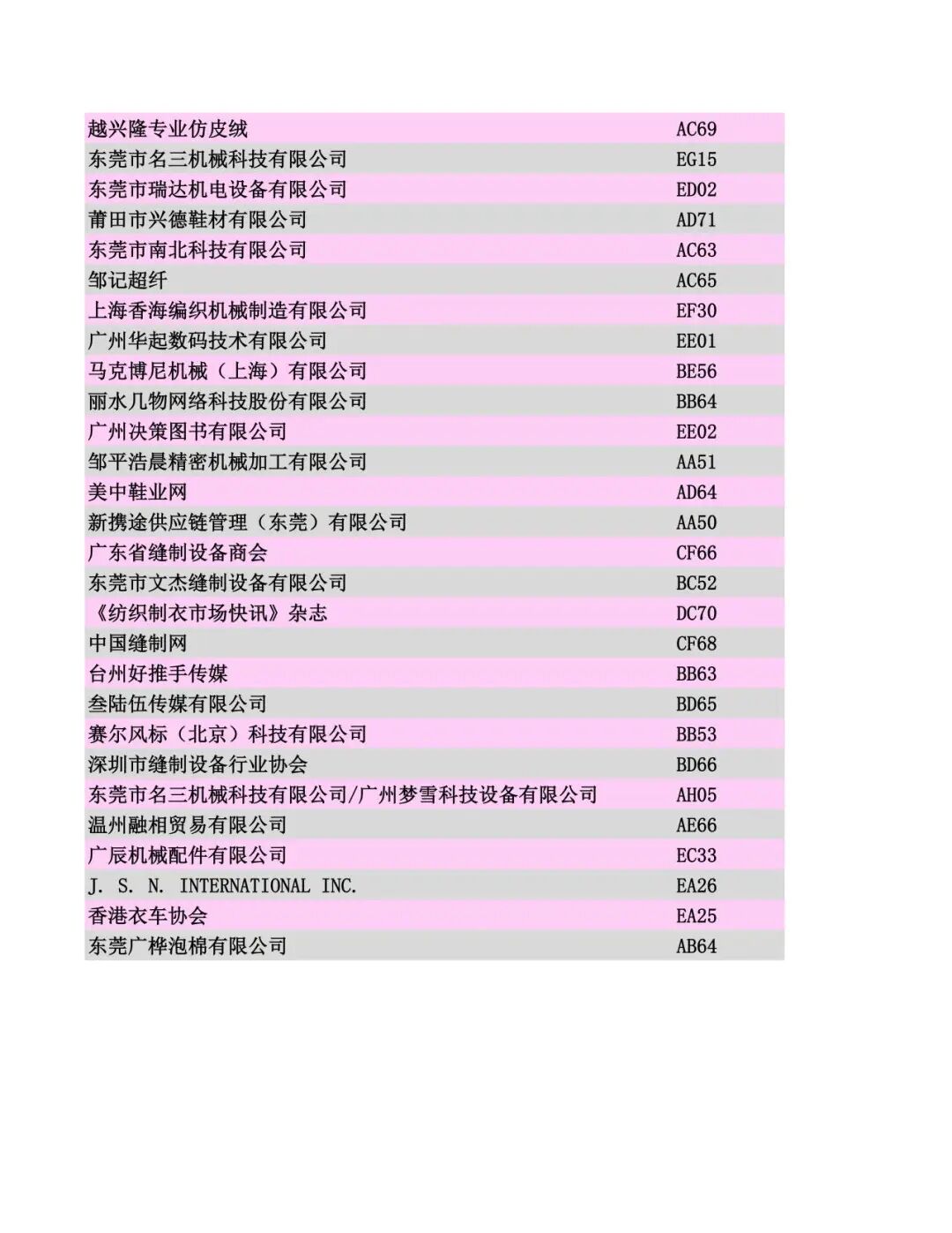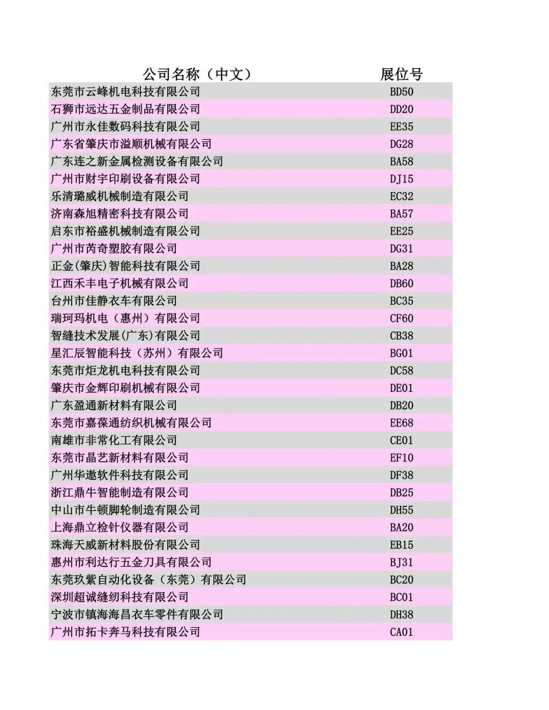 展商名录公布
