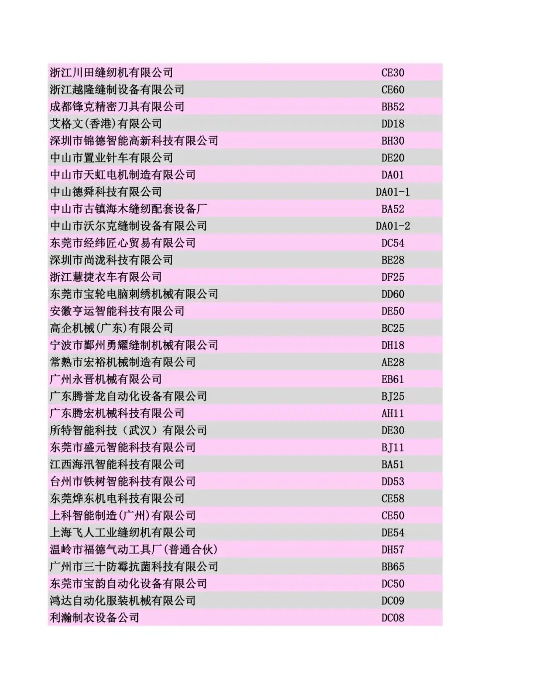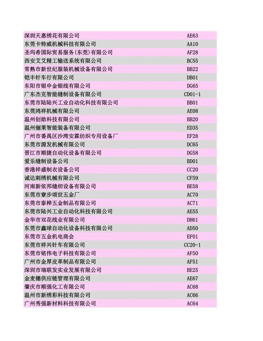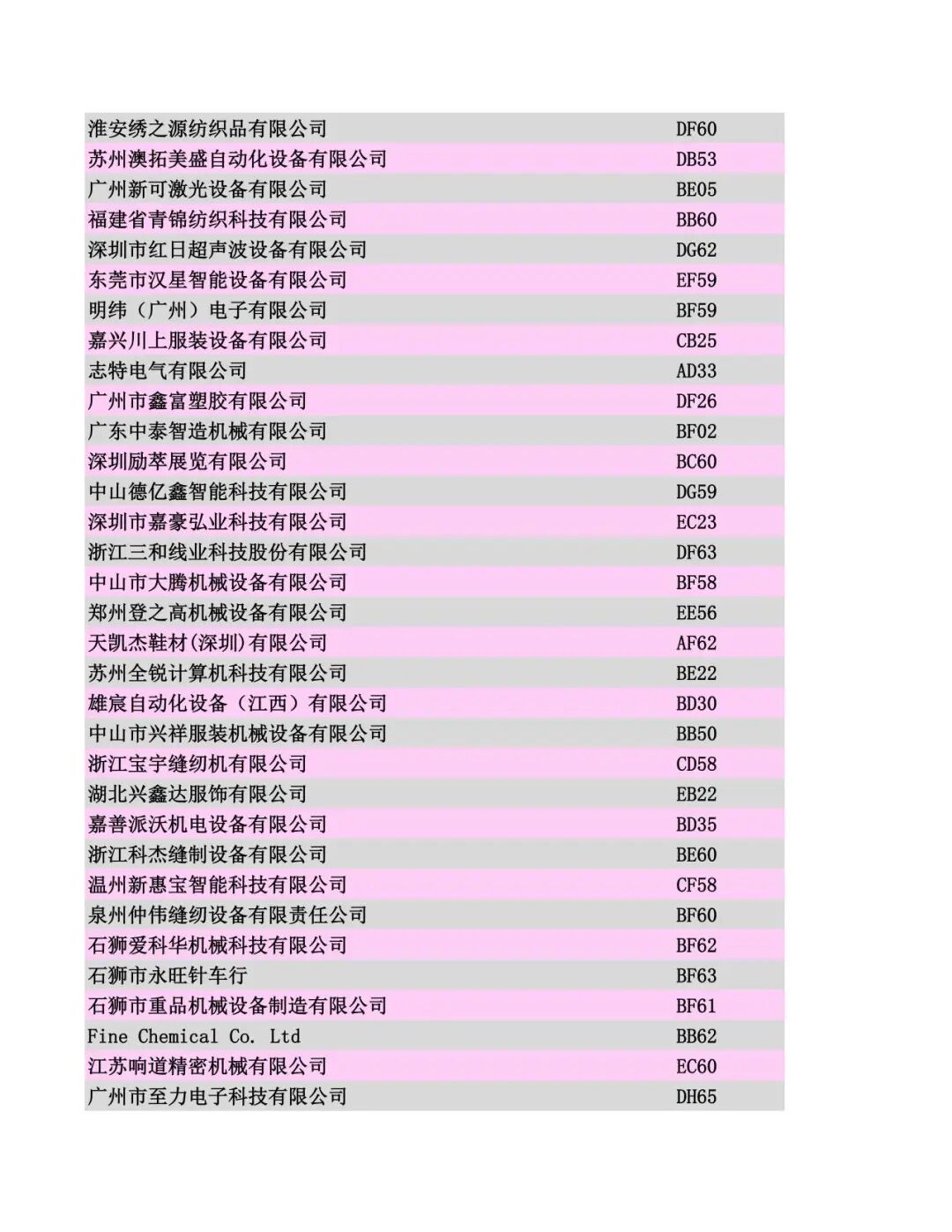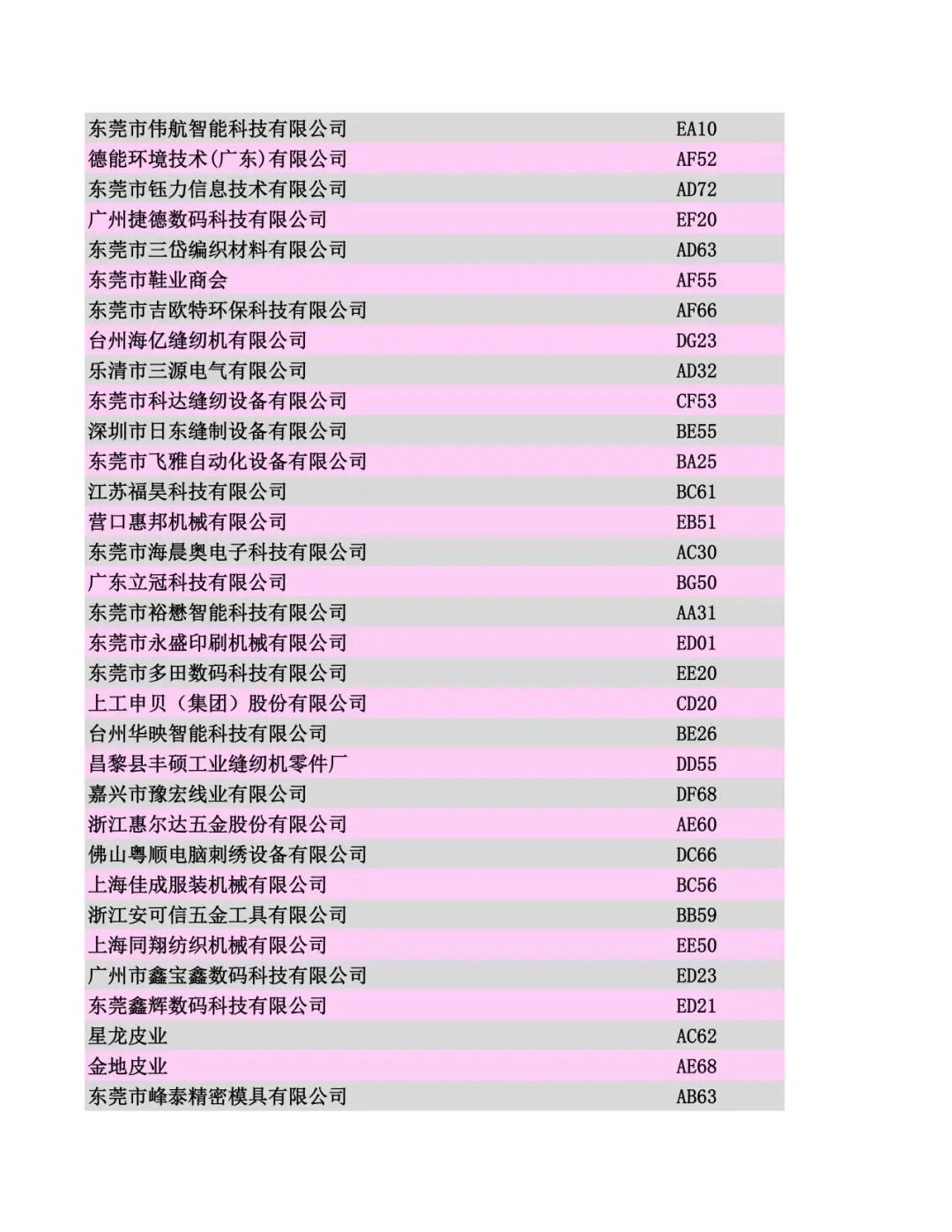 展商名录公布