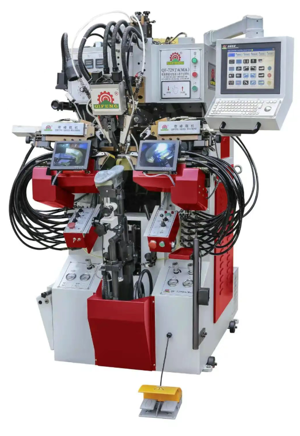 鞋头、后踵定型机是一种用于鞋类制造的专用设备。核心要点:1. 该设备主要用于鞋头和后踵部位的定型处理。2. 定型过程旨在确保鞋头和后踵形状符合设计要求,提升鞋品质量。3. 通过特定工艺(如加热、加压)使鞋部件材料固化成型。4. 应用于制鞋工业中,是提高生产效率和产品一致性的关键设备之一。5. 有助于改善鞋子的舒适度和耐用性。