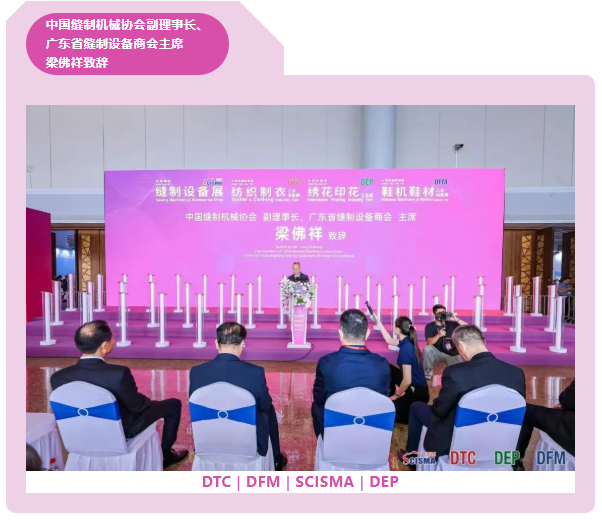 讯通展览公司董事长梁天富在开幕致辞上表示:服饰与鞋包、绣花与印花的边界正在加速融合,跨界创新为“小单快反”提供了更多可能。展会期间,我们将举办国际座谈会、AI应用分享论坛等一系列活动,努力搭建起集商贸、技术、交流于一体的行业生态平台。
